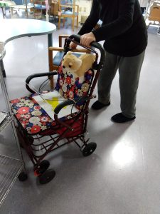 シルバーカーに乗せて一緒に館内をお散歩したりする姿も。