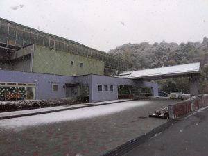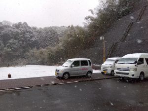 施設の周りもお昼ごろから雪が強くなり、薄っすらと白くなりました。